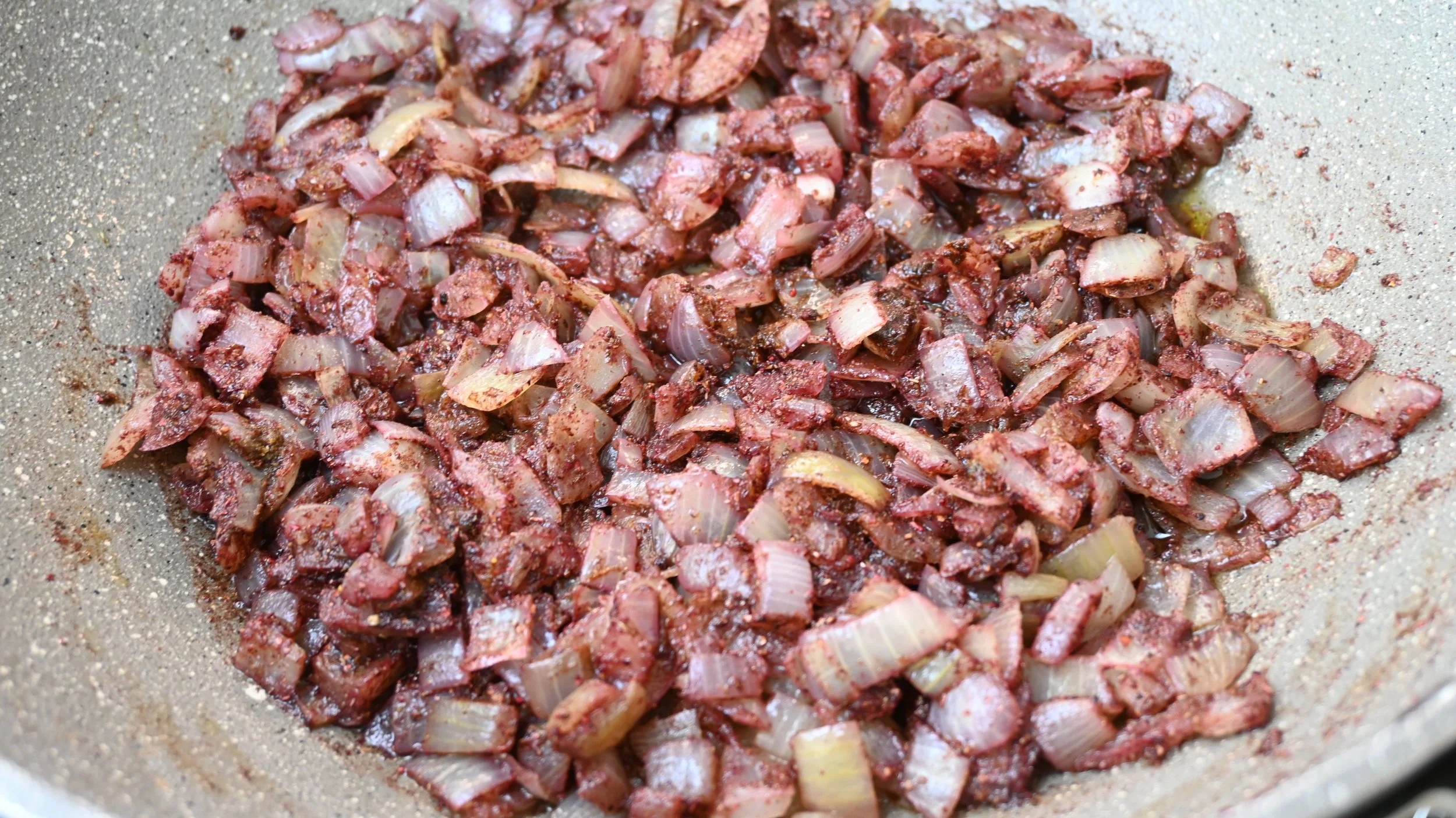 - Add 2 chicken breasts, 1 small red onion (halved), 1 cinnamon stick, 3 cloves, 2 cardamom pods, and salt to taste.