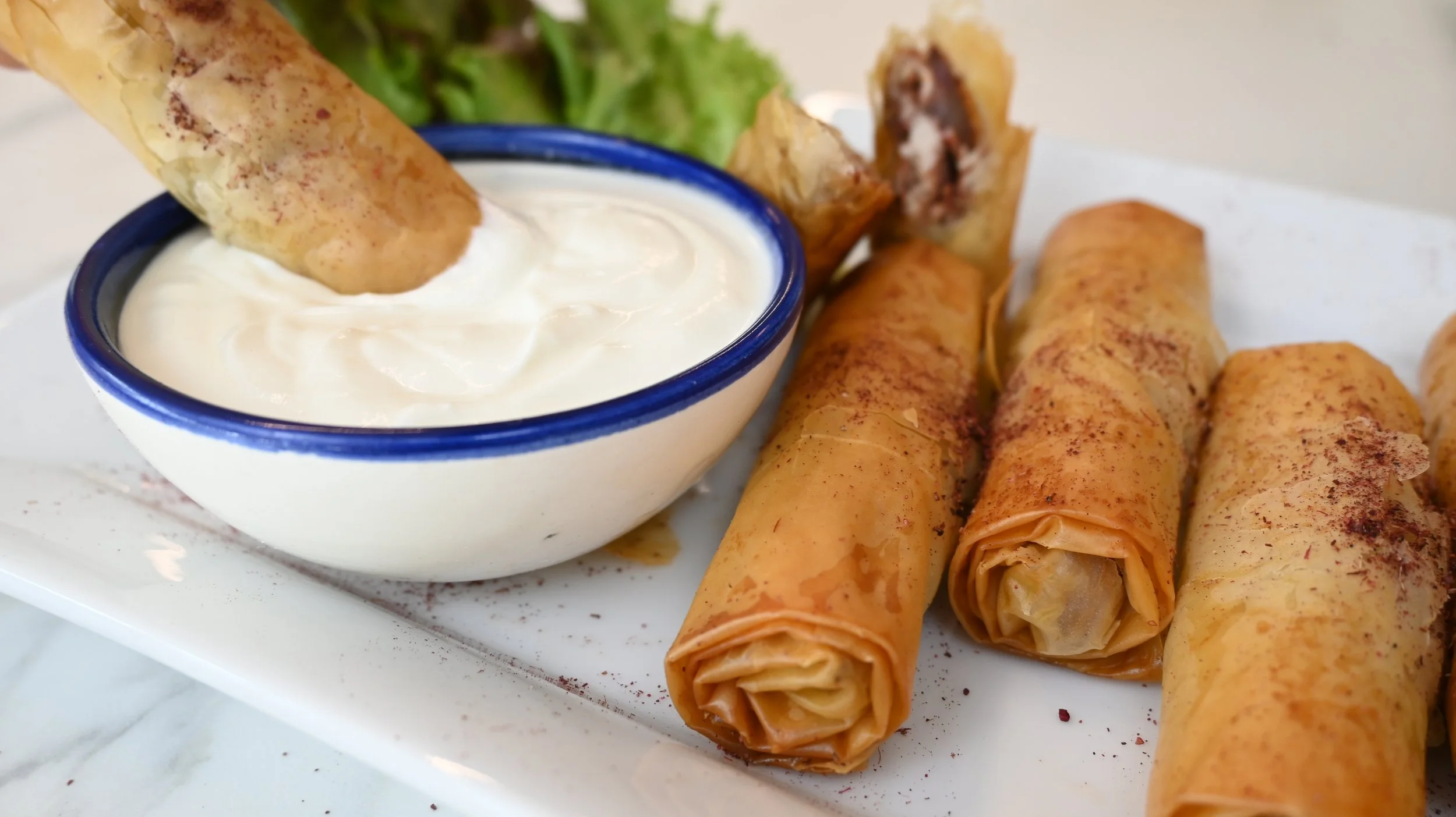 Crispy Mediterranean Chicken Rolls with Yogurt Dipping Sauce
